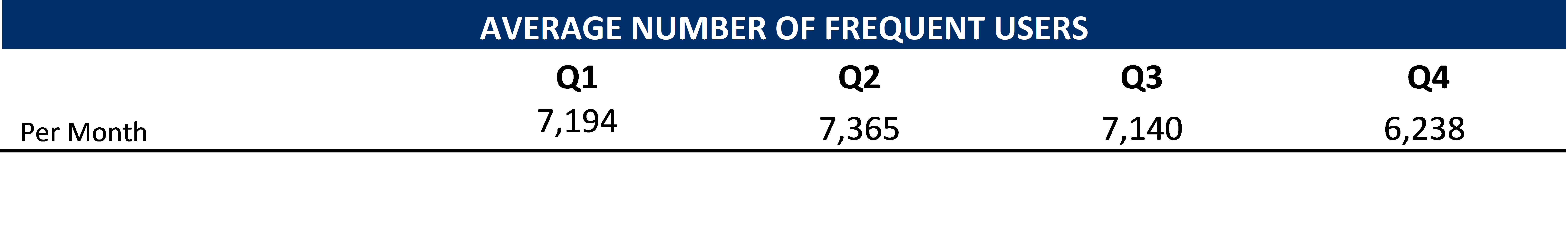 The number of drivers who qualified for the frequent-user discount was consistent the first three quarters and dipped in the fourth quarter, averaging around 6,200 drivers per month. Fewer people likely qualified for the discount because of fewer crossings made during the holidays and time off work.
